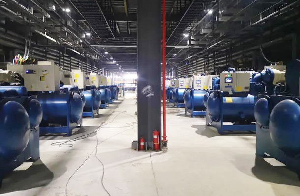 选用12台单机制冷量210万大卡磁悬浮2020欧洲杯夺冠热门 组,2台60万大卡的热泵。
