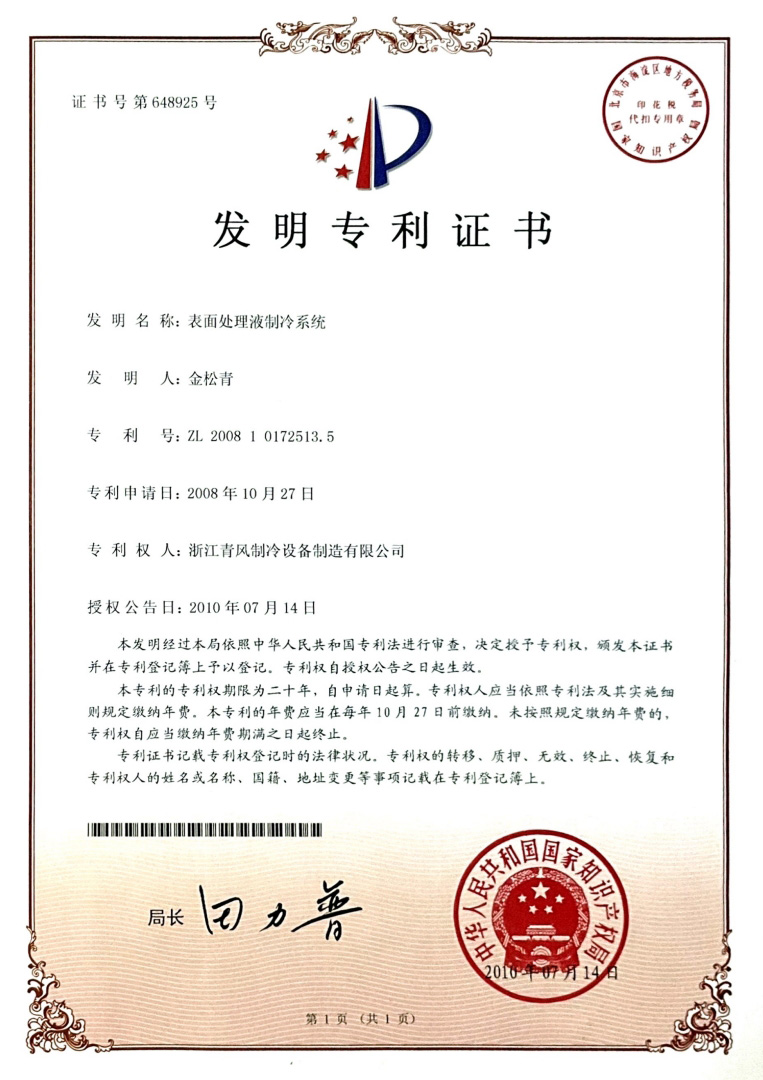 表面处理液制冷系统