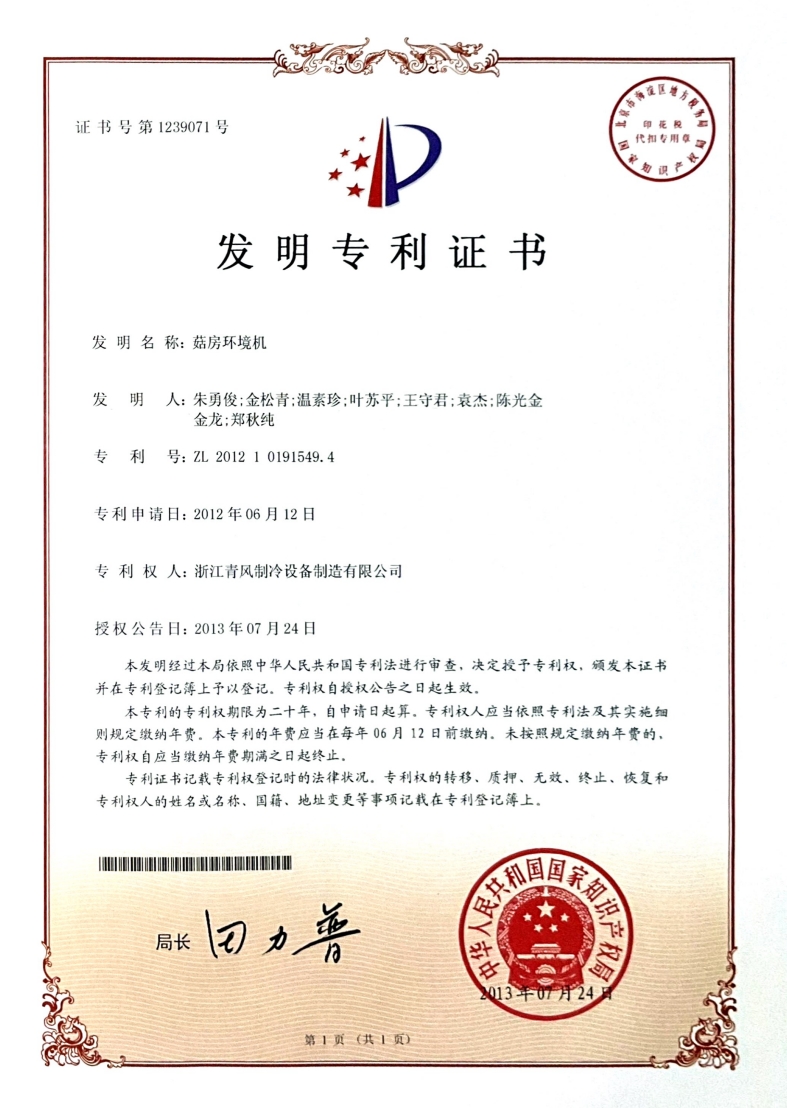 主导编写《食用菌环境调节机组》行业标准发布;