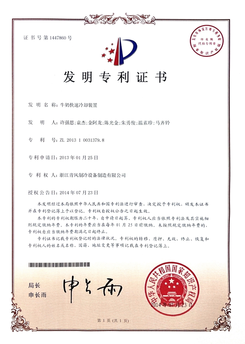 温州市十里亭,注册成立"温州青风制冷设备有限公司;