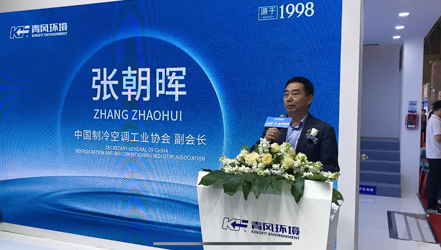 中国制冷空调工业协会副会长张朝晖先生现场致辞,高度评价青风环境“从技术追随者到国家标准起草单位”的跨越式发展,肯定了青风环境在技术创新、标准起草和节能践行上的贡献。