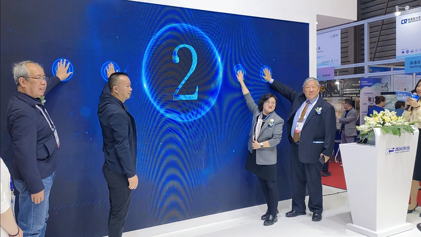 浙江省制冷空调行业协会会长陈光明、上海冷冻空调行业协会秘书长邵乃宇、丹佛斯全球副总裁Frank Ford、产业在线董事长杨洁、青风环境董事长金贤松、青风环境总经理金松青等嘉宾领导为产品盛大揭幕。该产品将秉持青风磁悬浮家族高效节能的优势,响应国家政策号召,为推动热泵高质量发展助力。