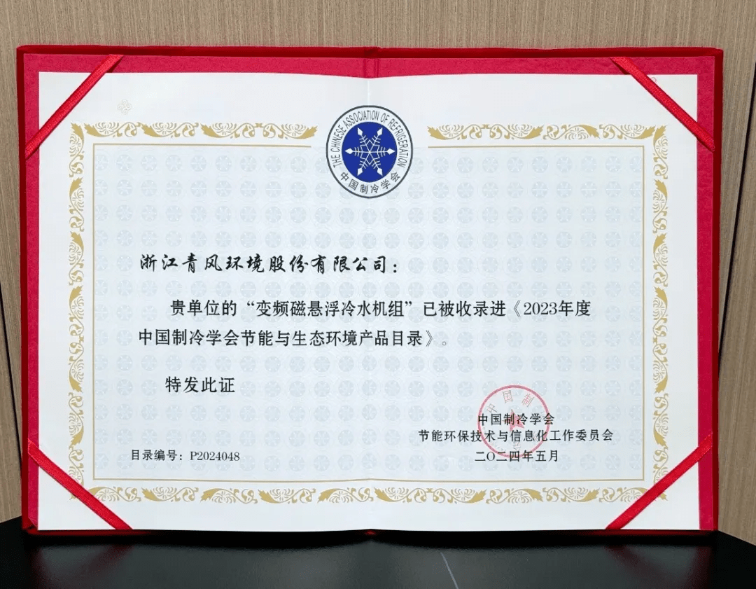 其中,青风环境变频磁悬浮2020欧洲杯夺冠热门 组凭借其高效节能和稳定可靠的突出优势,成功入选《2023年度中国制冷学会节能与生态环境产品目录》。