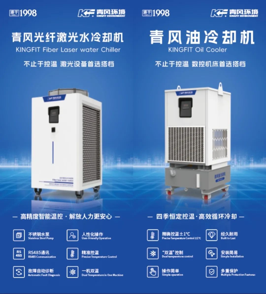 而全新产品光纤激光水冷却机和油冷却机的问世,也打开了青风进入激光设备、数控机床制冷控温领域的大门。